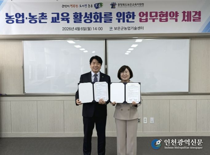 [인천광역신문] 최예준 기자 | 보은군농업기술센터는 충청북도보은교육지원청과 농업·농촌 교육 활성화를 위한 업무협약을 체결했다고 7일 밝혔다.