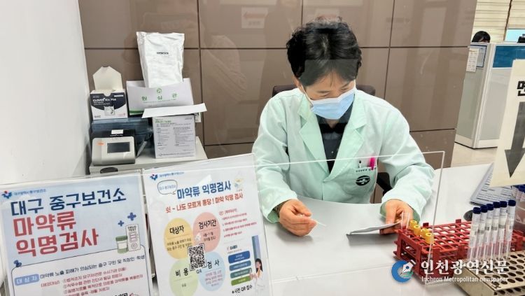 [인천광역신문] 최예준 기자 | 대구 중구보건소(소장 황석선)는 최근 이른바 ‘퐁당 마약’ 등 의도치 않은 마약류 노출 피해를 예방하고 주민의 건강과 안전을 위해 4월부터 11월까지 중구보건소 임상병리실(2층)에서 ‘마약류 익명검사’를 실시한다.