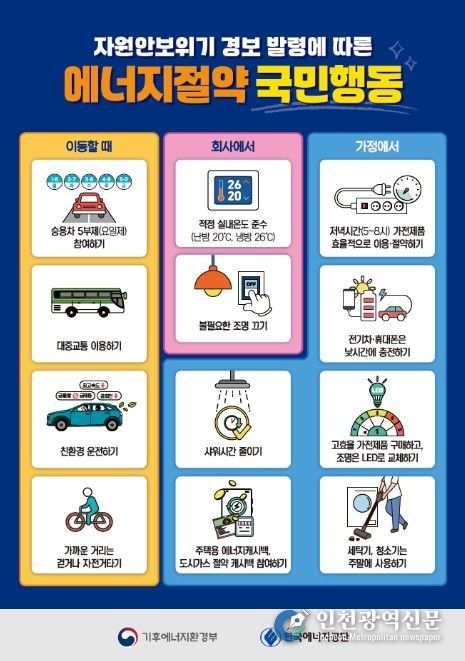 [인천광역신문] 최예준 기자 | 승용차 5부제 자율 시행, 석유 사용량 절감계획 제출 등 민간 기업들의 자발적인 에너지절약 참여가 이뤄지고 있다.