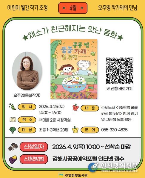 [인천광역신문] 최예준 기자 | 김해시 진영한빛도서관은 오는 25일 ‘오주영 작가 초청 강연’을 개최한다고 7일 밝혔다.
