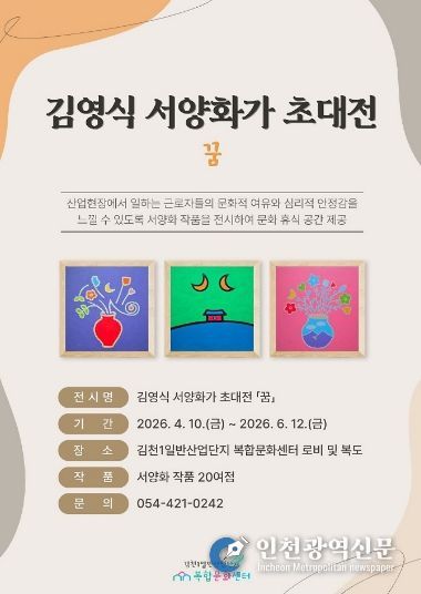 [인천광역신문] 최예준 기자 | 김천시는 김천1일반산업단지 복합문화센터에서 지역 예술가 김영식 작가의 기획초대전 '꿈'을 오는 4월 10일부터 6월 12일까지 개최한다고 밝혔다.