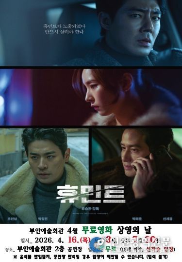 [인천광역신문] 최예준 기자 | 부안군은 오는 16일 부안예술회관 공연장에서 4월 무료 영화 ‘휴민트’를 무료로 상영한다j고 밝혔다.