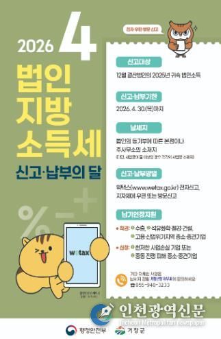 [인천광역신문] 최예준 기자 | 거창군은 4월 한 달간 12월 결산 법인을 대상으로 2025년 귀속 소득에 대한 법인지방소득세 집중 신고기간을 운영한다.
