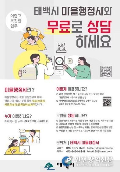 [인천광역신문] 최예준 기자 | 태백시는 시민들이 일상에서 겪는 복잡한 행정 문제를 신속하게 해결할 수 있도록 4월부터 ‘마을행정사’ 운영을 시작한다고 밝혔다.
