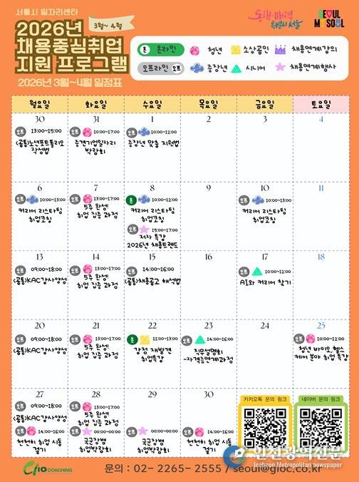 이와 함께 시는 취업을 희망하는 서울 거주 전 연령(청년·취약계층·중장년·시니어) 4,500명을 대상으로, 채용 연계를 핵심으로 한 맞춤형 취업지원 프로그램을 4월부터 운영한다.