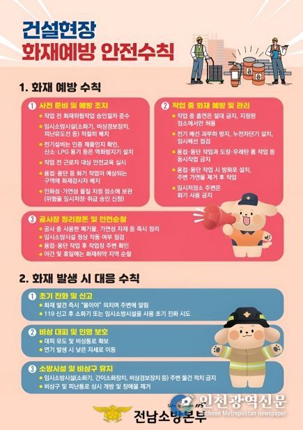 [인천광역신문] 최예준 기자 | 해남소방서(서장 박춘천)가 건설현장 화재사고 예방을 위해 안전수칙 홍보를 강화한다고 밝혔다.
