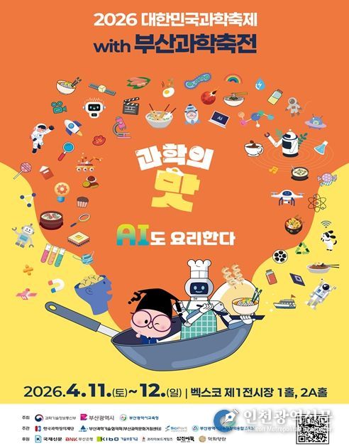 [인천광역신문] 최예준 기자 | 부산시는 오는 4월 11일부터 12일까지 이틀간 해운대구 벡스코 제1전시장 1홀, 2A홀에서 '2026 대한민국 과학축제 with 부산과학축전'을 개최한다고 밝혔다.