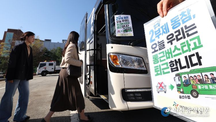 [인천광역신문] 최예준 기자 | 대전 동구는 정부의 자원안보 위기 경보 ‘경계’ 단계 발령에 따른 공공기관 승용차 2부제 시행에 발맞춰, 직원들의 출‧퇴근 불편을 줄이고 에너지 절약 정책에 적극 동참하기 위해 ‘퇴근 전용 통근버스’를 신설·운영한다고 9일 밝혔다.