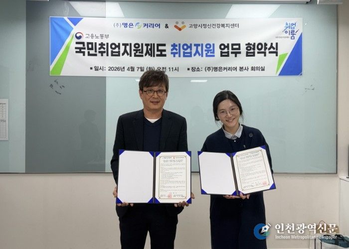 [인천광역신문] 최예준 기자 | 고양특례시 정신건강복지센터는 지난 7일 ㈜명은커리어와 업무협약(MOU)을 체결했다. 해당 협약은 고양 시민의 취업 지원과 정신건강 증진을 위해 진행됐다.