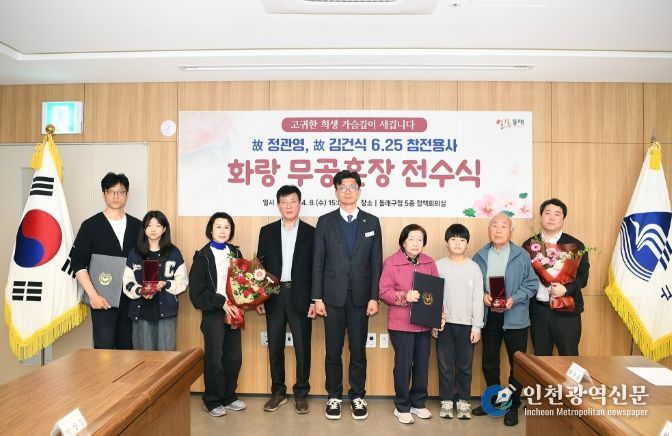 [인천광역신문] 최예준 기자 | 부산 동래구는 지난 8일 6·25전쟁에 참전해 무공을 세운 고(故) 정관영 중위와 고(故) 김건식 병장의 후손에게 각각 은성화랑, 무성화랑 무공훈장을 전달했다고 밝혔다.