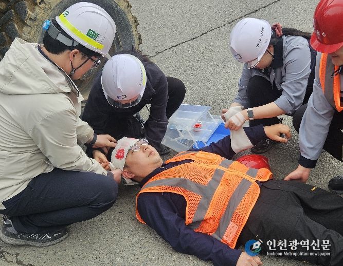 환경자원사업처는 매립 현장 내 중장비 및 반입 차량 간 충돌 사고를 사전에 예방하고, 사고 발생 시 신속한 구호 조치 역량을 강화하기 위해 실전 모의훈련을 진행했다.