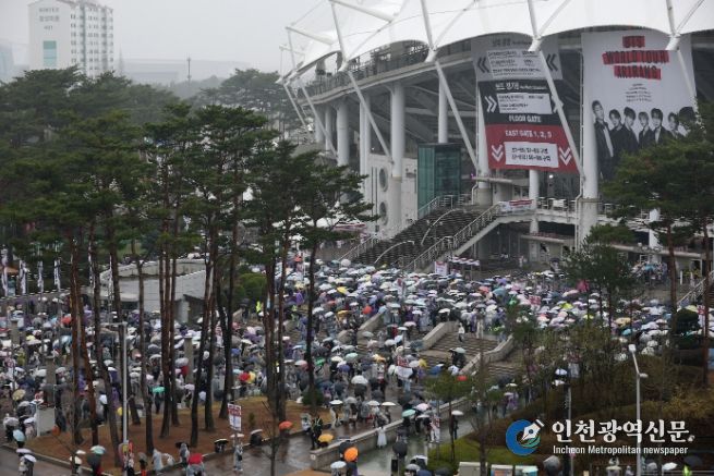 [인천광역신문] 최예준 기자 | ‘BTS 월드투어 아리랑 in 고양’이 열리는 고양종합운동장, 9일 비가 내리는 궂은 날씨에도 공연장과 인근 상가까지 BTS 콘서트를 즐기기 위해 방문한 국내외 관람객으로 가득찼다.