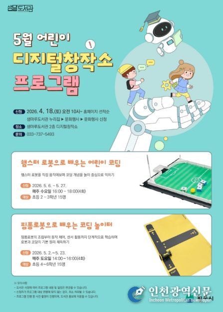 [인천광역신문] 최예준 기자 | 원주시 샘마루도서관은 관내 어린이를 대상으로 ‘5월 어린이 디지털창작소 프로그램’을 운영한다.