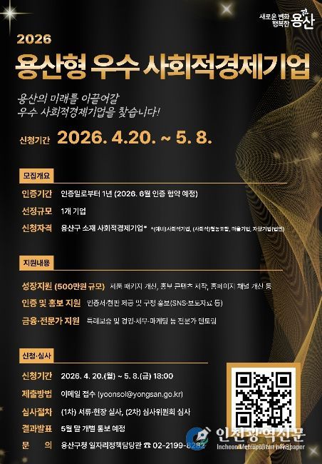 [인천광역신문] 최예준 기자 | 서울 용산구가 지역사회에 기여한 우수 사회적경제기업을 발굴·인증하고 체계적으로 육성하는 사업에 본격 착수했다.