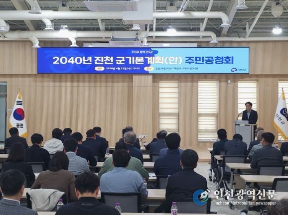 [인천광역신문] 최예준 기자 | 충북 진천군은 지속가능한 미래 발전 방향 모색과 주민의 목소리 청취를 위해 진천읍 복합커뮤니티센터에서 2040년 진천 군 기본계획(안) 공청회를 개최했다고 22일 밝혔다.
