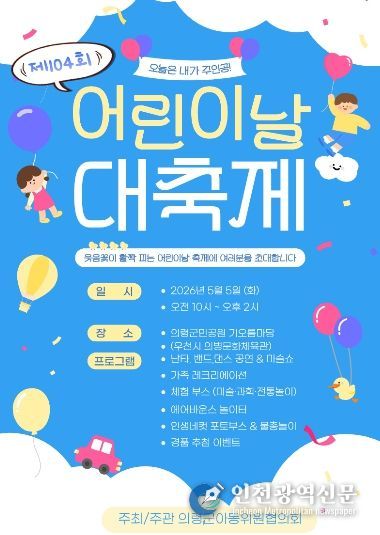[인천광역신문] 최예준 기자 | 의령군은 다음달 5일 제104회 어린이날을 맞아 의령군민공원 기오름마당에서 ‘제104회 의령군 어린이날 대축제’를 개최한다고 밝혔다. 이번 행사는 의령군아동위원협의회가 주관한다.