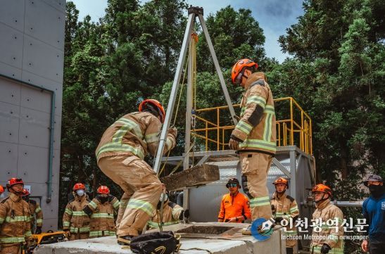 특히, 실제 콘크리트 구조물(맨홀)과 실화재훈련장 등을 활용한 실전 위주의 팀 훈련을 통해 전문 구조기법 습득과 함께 대원 고립사고 시 자기 보호 및 동료 구조 능력을 높이는 데 주력했다.