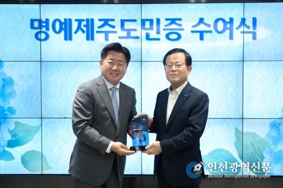 [인천광역신문] 관리자 기자 | 제주특별자치도는 장기적 경기침체 속에 도내 소기업·소상공인의 경영위기 극복을 위해 적극적인 금융지원을 펼친 조병규 우리은행장에게 명예도민증을 수여했다.