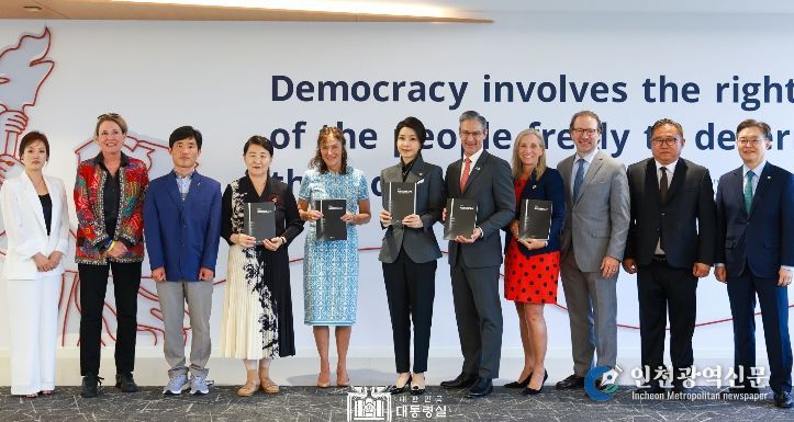 [인천광역신문] 관리자 기자 | 김건희 여사는 오늘(현지 시각 7. 11, 목) 오후 미국 민주주의진흥재단(NED) 회의실에서 북한 억류 피해자와 유족, 북한인권 개선 활동 중인 탈북민, 북한 전문가 등을 만나 북한의 인권문제와 개선 방향에 대해 의견을 나눴다. 김 여사는 작년 4월 미국 국빈 방문 때에도 북한 전문가와 탈북민들을 만나 북한인권 문제를 논의한 바 있다.