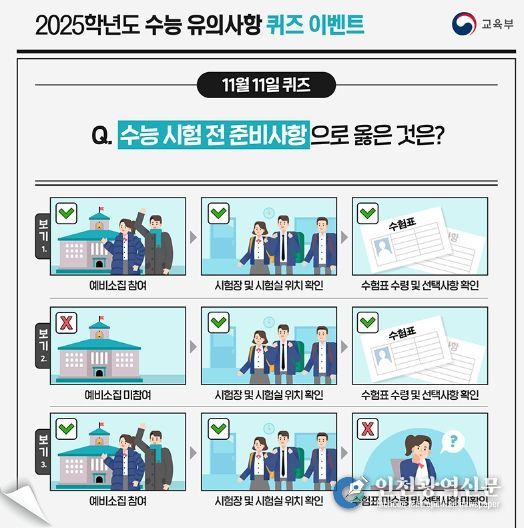 [인천광역신문] 관리자 기자 | Q. 수능 시험 전 준비사항으로 옳은 것은?