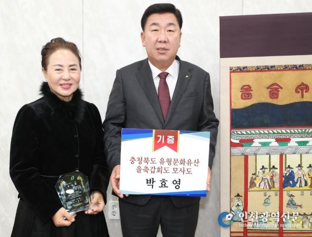 [인천광역신문] 관리자 기자 | 기록화 명인 박효영 작가가 28일 을축갑회도의 모사도를 청주시에 기증했다. 박 작가는 이날 오전 임시청사 직지실에서 이범석 청주시장에게 그림을 전달했다.