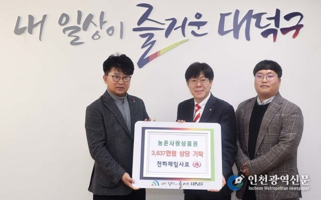 [인천광역신문] 관리자 기자 | 대전 대덕구는 천하제일사료로부터 어려운 이웃을 위한 3637만원 상당의 농촌사랑상품권을 기탁받았다고 10일 밝혔다.