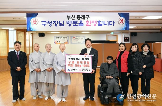 [인천광역신문] 관리자 기자 | 부산 동래구는 지난 20일 영산불교 현지사 부산분원(주지 보문스님)에서 어려운 이웃돕기 성금 1,000만 원과 성품(백미 100kg, 300만 원 상당)을 전달했다고 밝혔다.