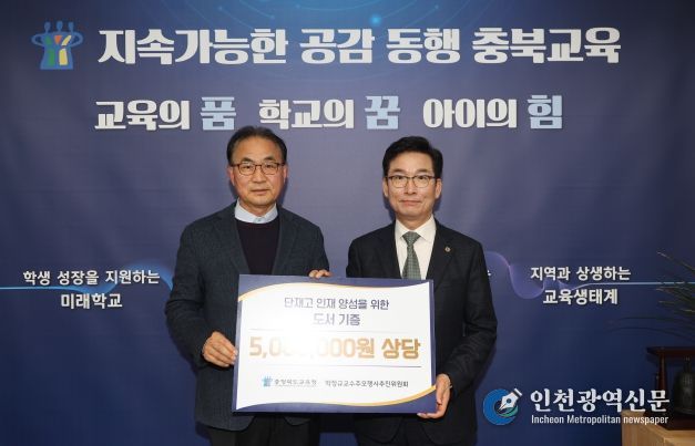 [인천광역신문] 관리자 기자 | 충청북도교육청은 6일, 집무실에서 박정규교수추모행사추진위원회로부터 오는 3월 개교하는 단재고등학교에 500만 원 상당의 도서를 기증하는 행사를 추진했다.