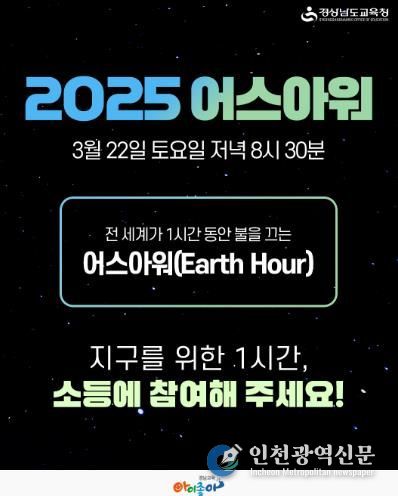 [인천광역신문] 관리자 기자 | 경상남도교육청은 생태전환교육을 실천하고자 전 세계가 함께 1시간 동안 불을 끄는 ‘어스아워(Earth Hour)’ 캠페인에 참여한다.