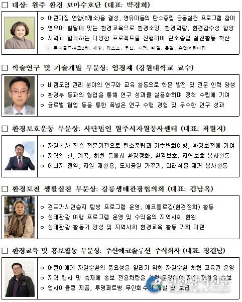 - 올해 대상은 원주 환경 꼬마수호단이 수상했다.