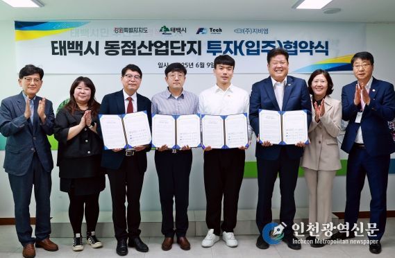 [인천광역신문] 관리자 기자 | 태백시는 6월 9일 강원특별자치도와 ㈜에프디테크(대표 최종대), ㈜지비엠(대표 김진, 박근용)과 함께 210억 원 규모의 투자협약을 체결했다.