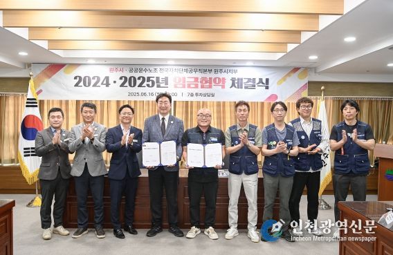 [인천광역신문] 관리자 기자 | 원주시는 16일 오전 10시 시청 7층 투자상담실에서 시 공무직노동조합과 임금협약을 체결했다.