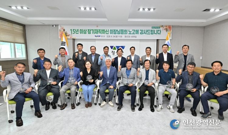 [인천광역신문] 관리자 기자 | 정선군은 6월 24일 정선군청 소회의실에서 지역 발전과 주민 복지를 위해 15년 이상 헌신한 모범 이장 10명에게 감사패를 전달하는 뜻깊은 자리를 마련했다.