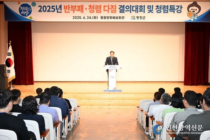 [인천광역신문] 관리자 기자 | 평창군은 24일 평창문화예술회관 소공연장에서 ‘2025년 반부패․청렴 다짐 결의대회 및 청렴특강’을 개최하며 청렴 실천 의지를 공표했다.
