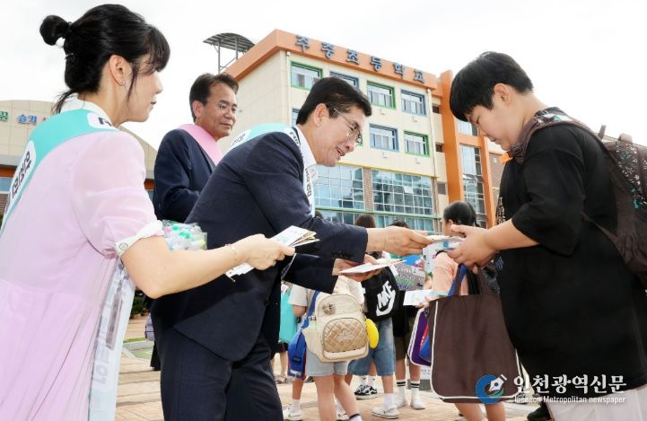 [인천광역신문] 관리자 기자 | 충청북도교육청은 2일, 윤건영 충청북도교육감이 주중초등학교를 방문해 여름방학을 앞두고 학생들의 안전의식을 높이고 실천 중심의 안전 문화 확산을 위해 '학생 주도 여름철 교통․물놀이 안전 캠페인'을 실시했다고 밝혔다.