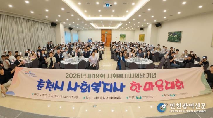 [인천광역신문] 관리자 기자 | 제19회 사회복지사의 날을 맞아 지난 3일 춘천 세종호텔 사파이어홀에서 ‘춘천시 사회복지사 한마음대회’가 열렸다.