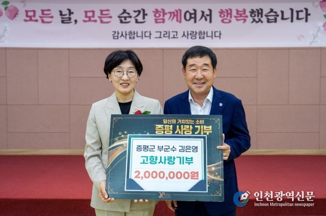 [인천광역신문] 관리자 기자 | 충북 증평군은 김은영 前 증평 부군수가 퇴임 후에도 증평을 잊지 않고 고향사랑기부금 200만원을 기탁했다고 7일 밝혔다.