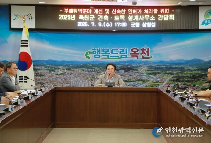 [인천광역신문] 관리자 기자 | 지난 9일 옥천군 군청 상황실에서 건축‧토목 부패 취약분야인 인허가의 투명성과 공정성을 높이고 신속한 행정 처리를 위한 간담회를 개최했다.