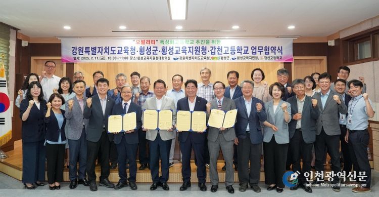 [인천광역신문] 관리자 기자 | 강원특별자치도교육청, 횡성군, 횡성교육지원청, 갑천고등학교는 7월 11일 오전 10시, 횡성교육지원청 대회의실에서 미래 모빌리티 산업을 선도할 전문 인력 양성과 지역산업 맞춤형 특성화고 추진을 위한 4자 간 업무협약(MOU)을 체결했다.