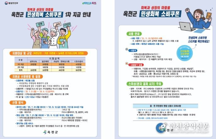 [인천광역신문] 관리자 기자 | 옥천군이 지역경제 활성화와 소상공인 매출 증대를 위해 오는 21일부터 시작되는‘1차 민생회복 소비쿠폰’ 접수 준비를 차질 없이 진행하고 있다.