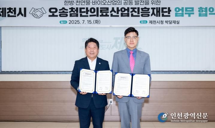 [인천광역신문] 관리자 기자 | 제천시가 지난 15일 시청 박달재실에서 오송첨단의료산업진흥재단과 한방·천연물·바이오산업의 지속적인 발전을 위한 업무협약(MOU)을 체결했다.