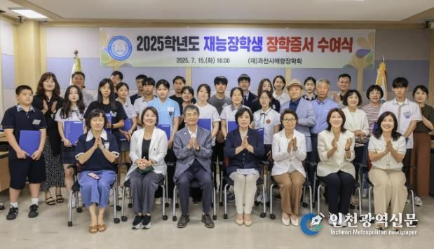 [인천광역신문] 관리자 기자 | 과천시 애향장학회는 지난 15일 시의회 1층 열린강좌실에서 ‘2025년 재능 장학생 장학증서 수여식’을 열고, 관내 중고등학생 24명과 단체 2팀에 총 3,550만 원의 장학금을 전달했다.
