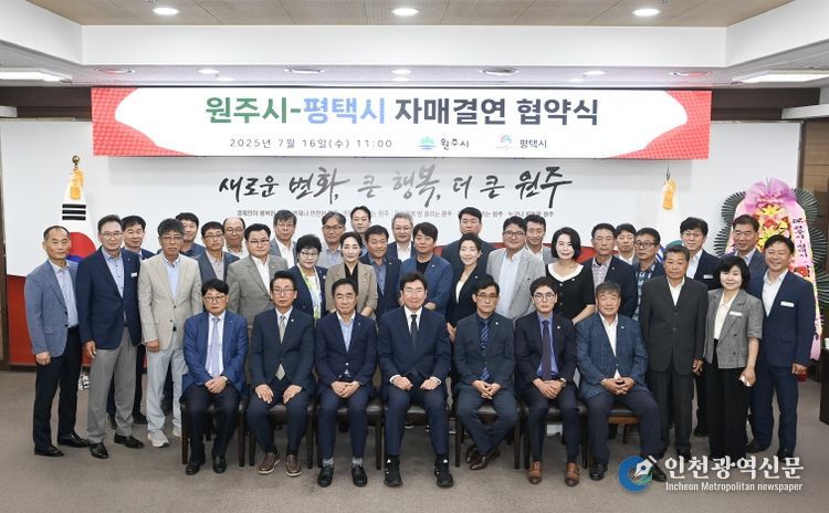 [인천광역신문] 관리자 기자 | 원주시는 16일 오전 11시 시청 10층 대회의실에서 평택시와 자매결연 업무협약을 체결했다.