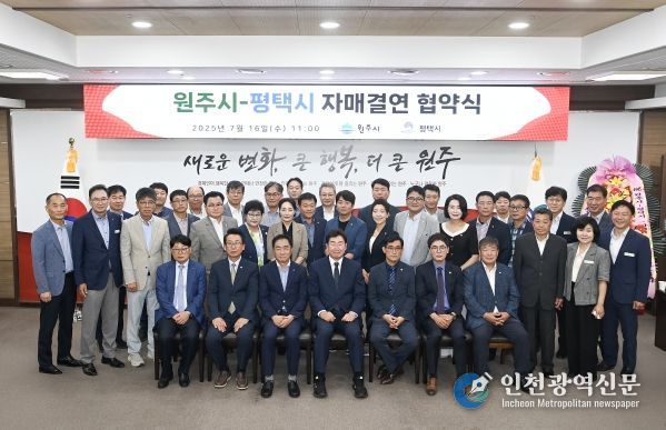 [인천광역신문] 관리자 기자 | 원주시는 16일 오전 11시 시청 10층 대회의실에서 평택시와 자매결연 업무협약을 체결했다.