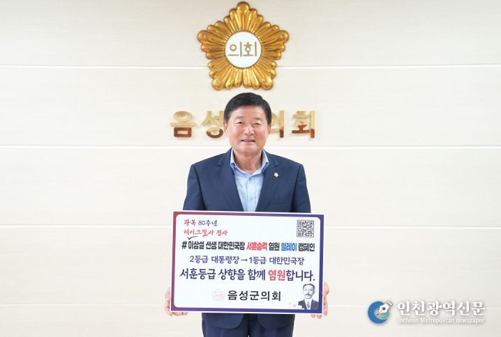 [인천광역신문] 관리자 기자 | 김영호 음성군의회 의장은 지난 7월 16일 독립운동가 보재 이상설 선생의 숭고한 업적을 기리고 서훈(敍勳) 등급 승격에 대한 사회적 공감대를 확산시키기 위해 ‘이상설 선생 서훈 승격 염원 릴레이 캠페인’에 동참했다.