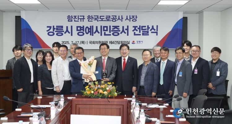 [인천광역신문] 관리자 기자 | 강릉시는 17일 국회 의원회관에서 한국도로공사 함진규 사장에게 강릉시 명예시민증서를 수여한다.