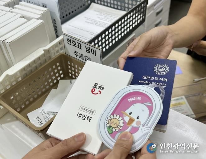 [인천광역신문] 최훈 기자 | 동작구가 여권 민원서비스 품질을 향상하고, 수요자 만족도를 제고하기 위해 자체 제작한 ‘여행용 네임택’을 지난 14일부터 무료 배부 중이라고 밝혔다.