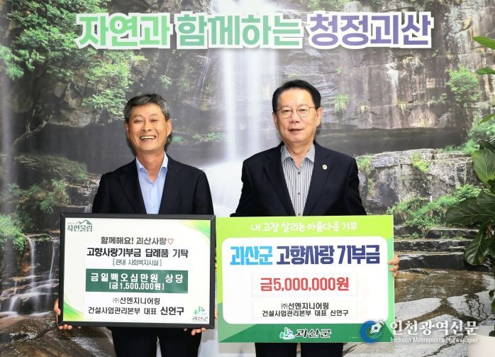 [인천광역신문] 관리자 기자 | 충북 괴산군은 ㈜선엔지니어링 건설사업관리본부 신언구 대표가 고향사랑기부제를 통해 500만 원을 기탁했다고 18일 밝혔다.