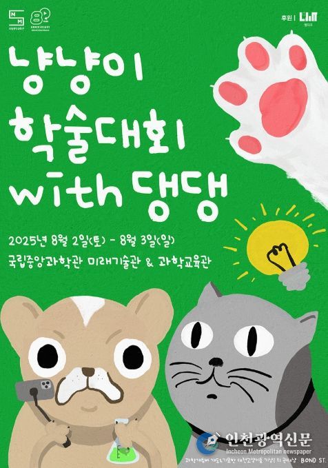 [인천광역신문] 관리자 기자 | 과학기술정보통신부 국립중앙과학관은 8월 8일 세계 고양이의 날과 8월 26일 세계 개의 날을 맞아 우리 삶에 친숙한 두 동물을 주제로 ‘댕댕도 함께하는(With 댕댕) 냥냥이 학술대회 ’ 행사를 오는 8월 2일부터 8월 3일 양일간 개최한다.