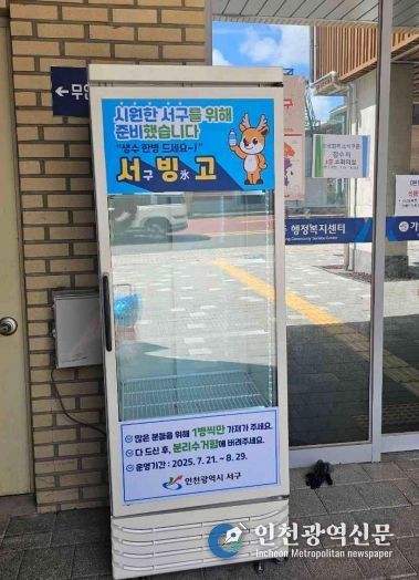 [인천광역신문] 최예준 기자 | 인천 서구는 구민들이 일상생활 중 폭염에 따른 불편을 겪지 않도록 23개 동 행정복지센터에 생수 냉장고 ‘서빙고’와 ‘양심양산 대여’ 사업을 8월 말까지 운영한다고 22일 밝혔다.